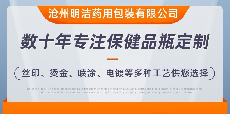 滄州明潔專注于生產(chǎn)100ml亞克力瓶,膠囊瓶,藏紅花包裝瓶,壓片糖果瓶,膠囊瓶,蟲(chóng)草瓶,黑枸杞瓶,雪菊瓶,西洋參瓶,鐵皮楓斗石斛包裝,靈芝孢子油瓶,東革阿里膠囊瓶,用心選材,產(chǎn)品規(guī)格眾多,款式新穎。