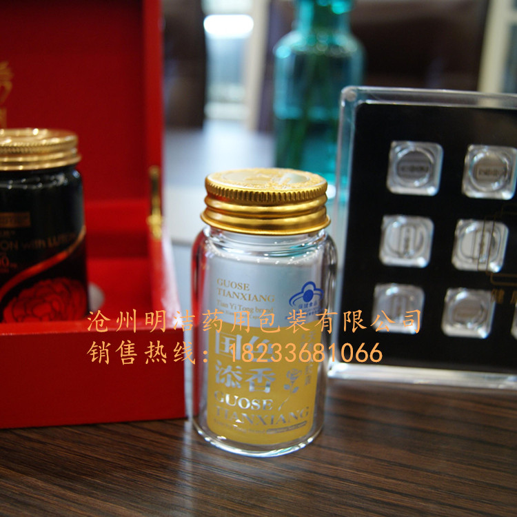 此款保健品瓶,采用中性硼硅玻璃,高硼硅玻璃,引進(jìn)德國設(shè)備生產(chǎn)。