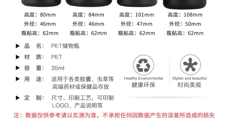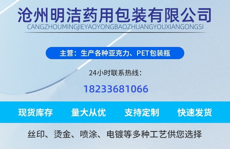 滄州明潔專(zhuān)注于生產(chǎn)磨砂避光保健品瓶,黑色藥瓶,100ml保健品瓶,藥品分裝瓶,鈣片瓶,膠囊分裝瓶,片劑塑料瓶,藥丸瓶,vc塑料瓶,顆粒瓶,中藥瓶,壓片糖果瓶,保健品瓶,產(chǎn)品規(guī)格眾多,款式新穎,品質(zhì)過(guò)硬。