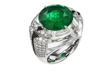 圓形綠色寶石鑲嵌在中間,在閃鉆的襯托下閃耀著通透的光芒。幾何圖形的排列打造出_的審美感受,帶有宇宙的夢幻感。它不僅在正面極為華麗,正對于自己的一面也做了設計,讓它在360下都沒有死角。除了作為戒指,它也可以轉(zhuǎn)換成項鏈和胸針,讓美麗有更多的展示方法。