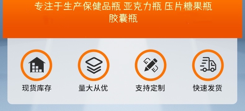 滄州明潔專注于生產亞克力保健品瓶,NMN膠囊瓶,保健品膠囊瓶,魚油膠囊瓶,皇冠蓋膠囊瓶,斜肩瓶,壓片糖果瓶,藥片膠囊瓶,保健品塑料瓶,中藥丸瓶,避光塑料瓶,ps保健品瓶,用心選材,規(guī)格眾多,外觀新穎,彰顯大氣。